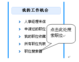 2) 進入"個人管理中心",位于左側(cè)子欄目的"我的工作機會",點擊"職位搜索器"如下圖所示: